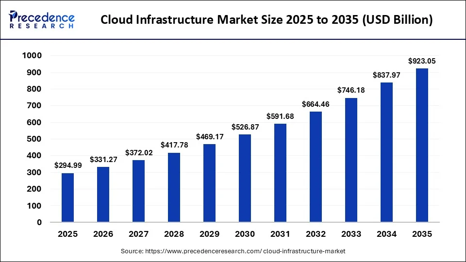 Ottawa, Feb. 26, 2026 (GLOBE NEWSWIRE) -- According to Precedence Research, the global cloud infrastructure market size is expected to be worth around USD 923.05 billion by 2035, increasing from USD 331.27 billion in 2026, with a significant CAGR of 12.08% between 2026 and 2035.