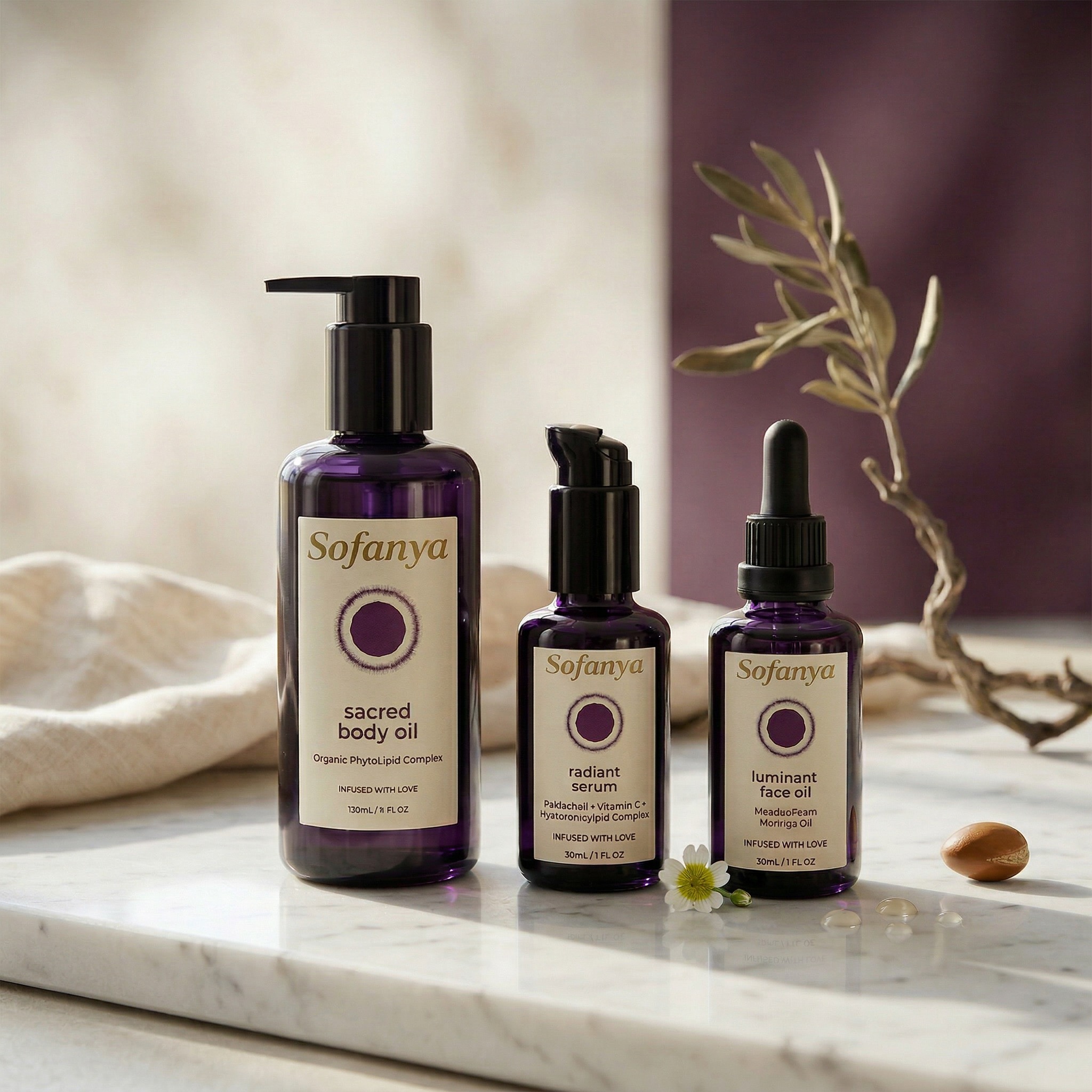 "We create products that support you on every level — your skin, your nervous system, and the way you feel within yourself. This isn't about doing more. It's about coming back. To your body. To your rhythm. To your truth." The Sofanya Promise